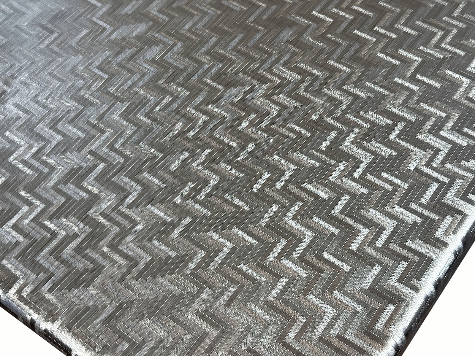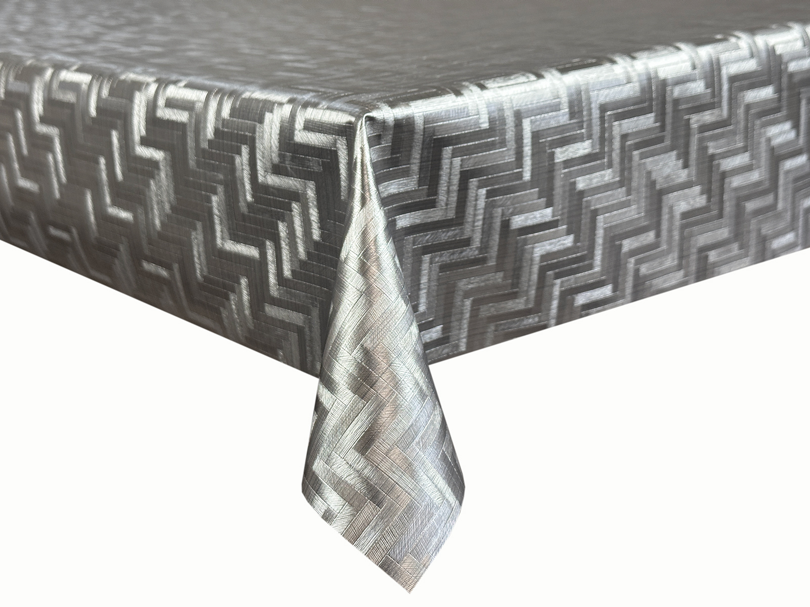 - Tablecloths METALLICO - tablecloth with polyester backing. Available in rolls 140 cm wide and 20 m long. Fabric: printed 100% PVC foil on 100% PP polyester backing. Elegant, monocolored embossed patterns imitating engraved and brushed metal. Variety of d