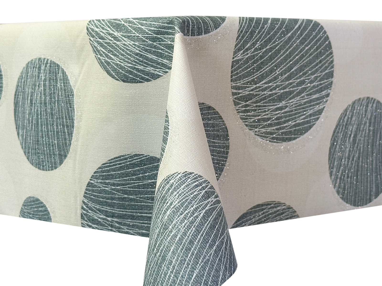 - Tablecloth GLITTER – 100% PVC on a 100% polyester fabric backing in rolls, 137cm wide, 20m long. Elegant oilcloth imitating fabric with printed patterns, covered with glitter.