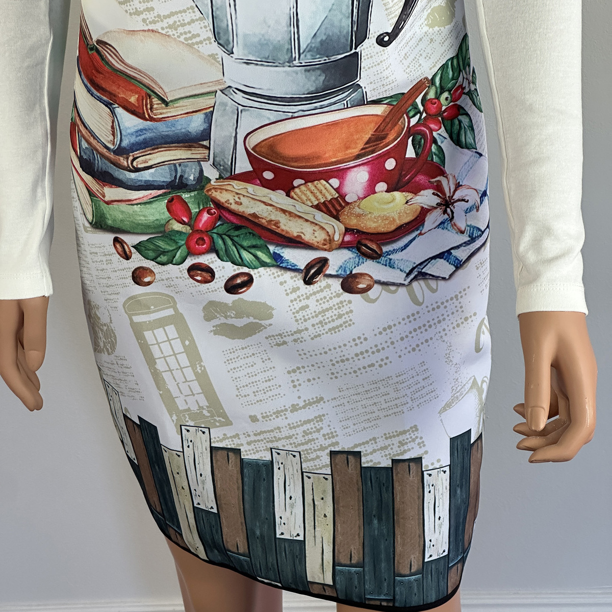 - Kitchen apron COFFEE II - size 50x76 cm. Material 100% polyester with a print. Moroccan clover motif. Made in China.