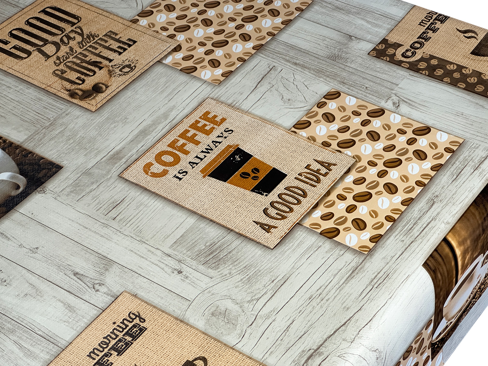 - Tablecloths 140 – tablecloths with non-woven backing. Available in rolls 140 cm wide and 20 m long. Fabric: printed 100% PVC foil on 100% PP non-woven backing. Variety of designs, possible to choose own collection. We provide special racks for exposure.