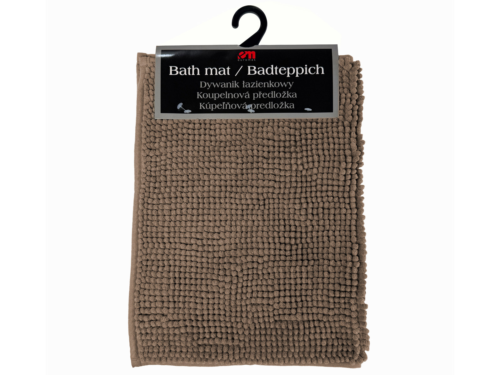 - Bath mats MADURA – solid color bath mats, made of soft, chenille polyester microfiber, 10 mm high and 8 mm thick pile. Weight 1000gsm. Made in China.