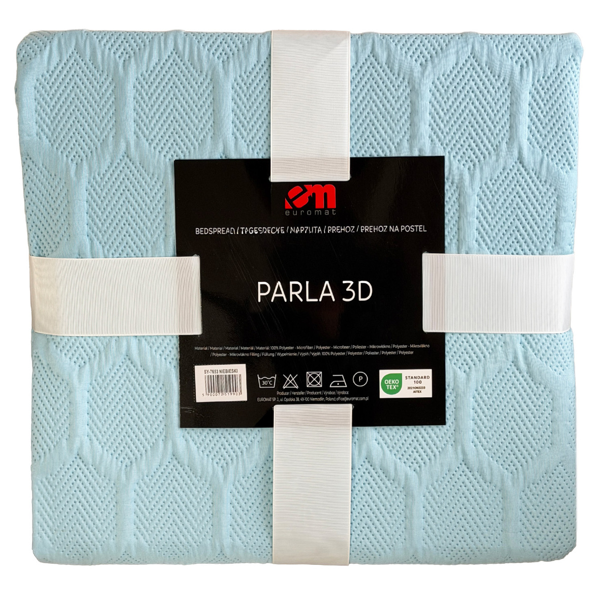 - PARLA 3D bedspreads – double-sided, single-colour, with decorative 3D embossing. Material: 100% matt polyester microfiber with 100% polyester filling. Modern designs. Available also as a set with 2 cushion covers. Made in China.