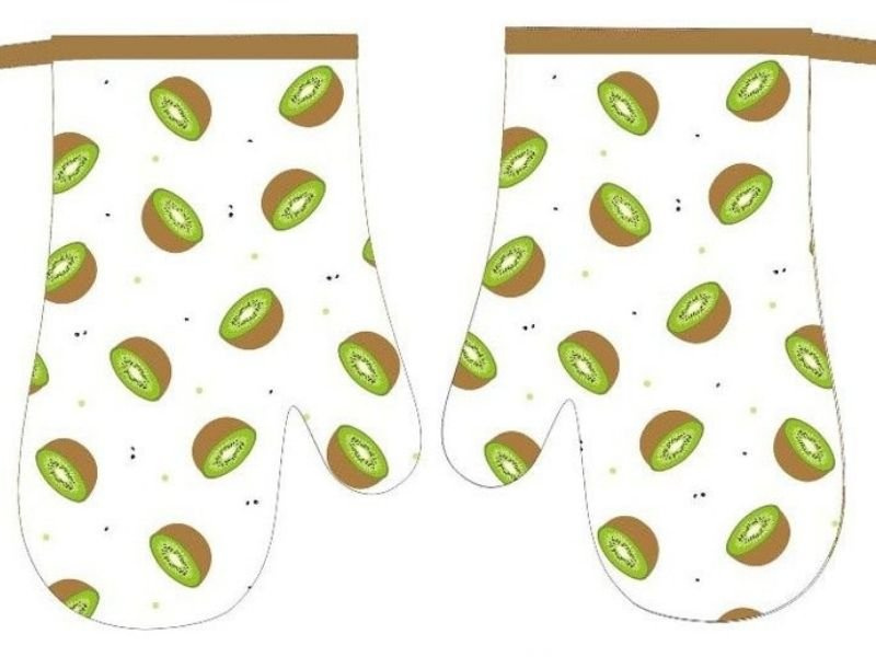 - Kitchen gloves with a magnet FRUITS 2 pcs. set, right + left (size 18x27 cm). Material 100% polyester with a print, non-woven filler. A magnet sewn-in. Fruit motif. Model: MT173-02CE. Product has CE certificate. Made in China.