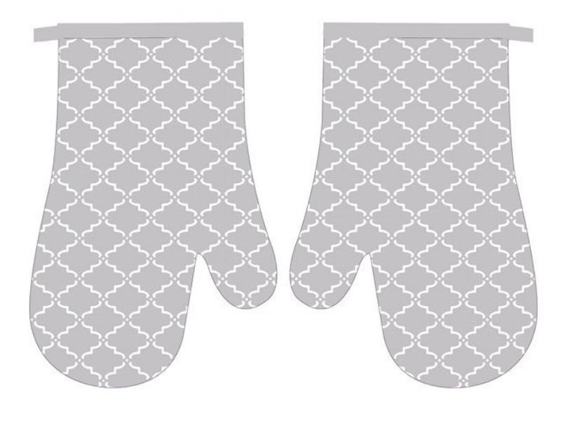 - Kitchen gloves with a magnet CLOVER 2 pcs. set, right + left (size 18x27 cm). Material 100% polyester with a print, non-woven filler. A magnet sewn-in. Clover motif. Model: MT173-02CE. Product has CE certificate. Made in China.
