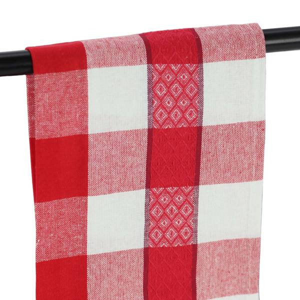 - Kitchen towels STELLA. 100% cotton, size 45x65 cm, weight 205 g / m2. White fabric with a colorful-woven checker pattern in 3 colors: yellow, blue, black. Made in China.