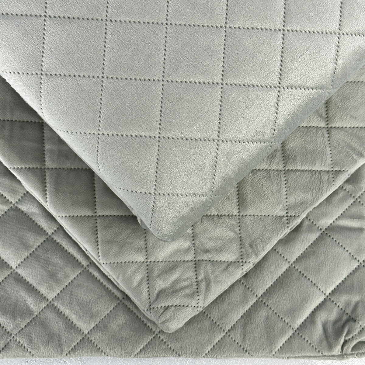 - Bedspreads AMARANTE – double-sided, single-color with decorative embossing. Fabric: front 100% polyester microfiber VELVET + back 100% polyester microfiber, filling: 100% polyester. Modern design. Made in China.