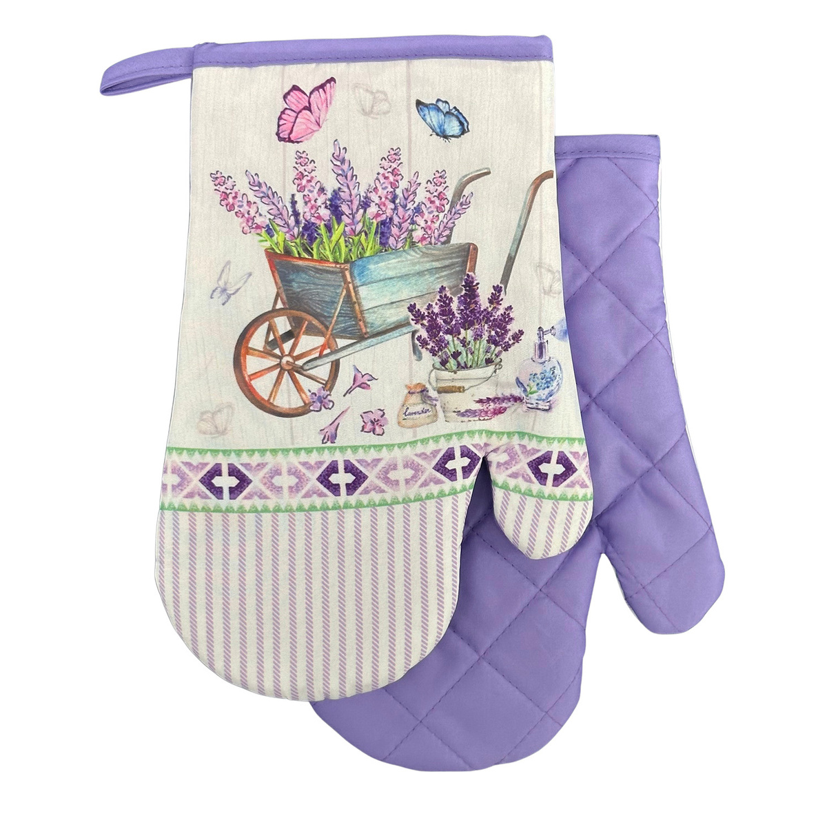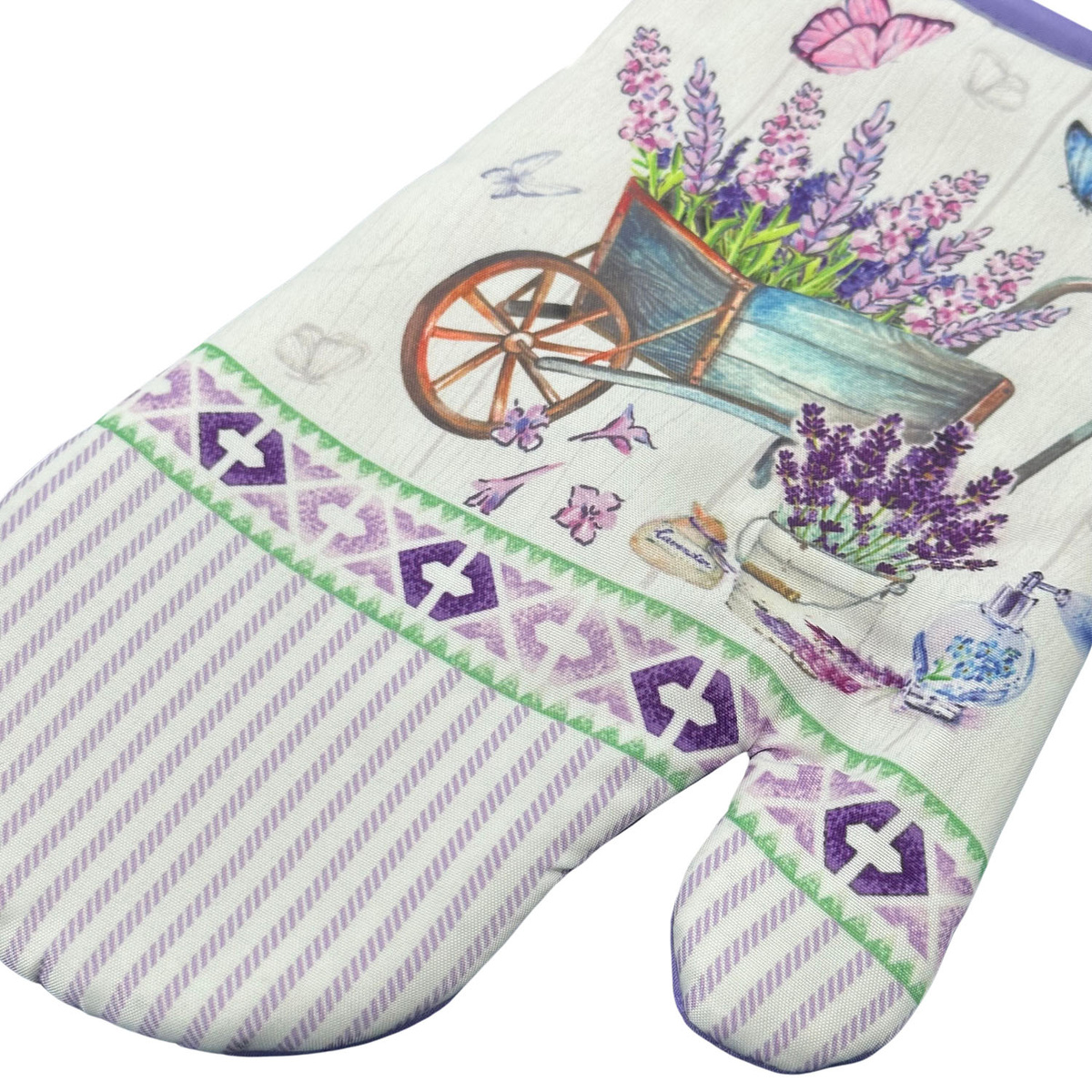 - Kitchen gloves with a magnet LAVENDER II 2 pcs. set, right + left (size 18x27 cm). Material 100% polyester with a print, non-woven filler. A magnet sewn-in. Lavender motif. Model: MT173-02CE. Product has CE certificate. Made in China.