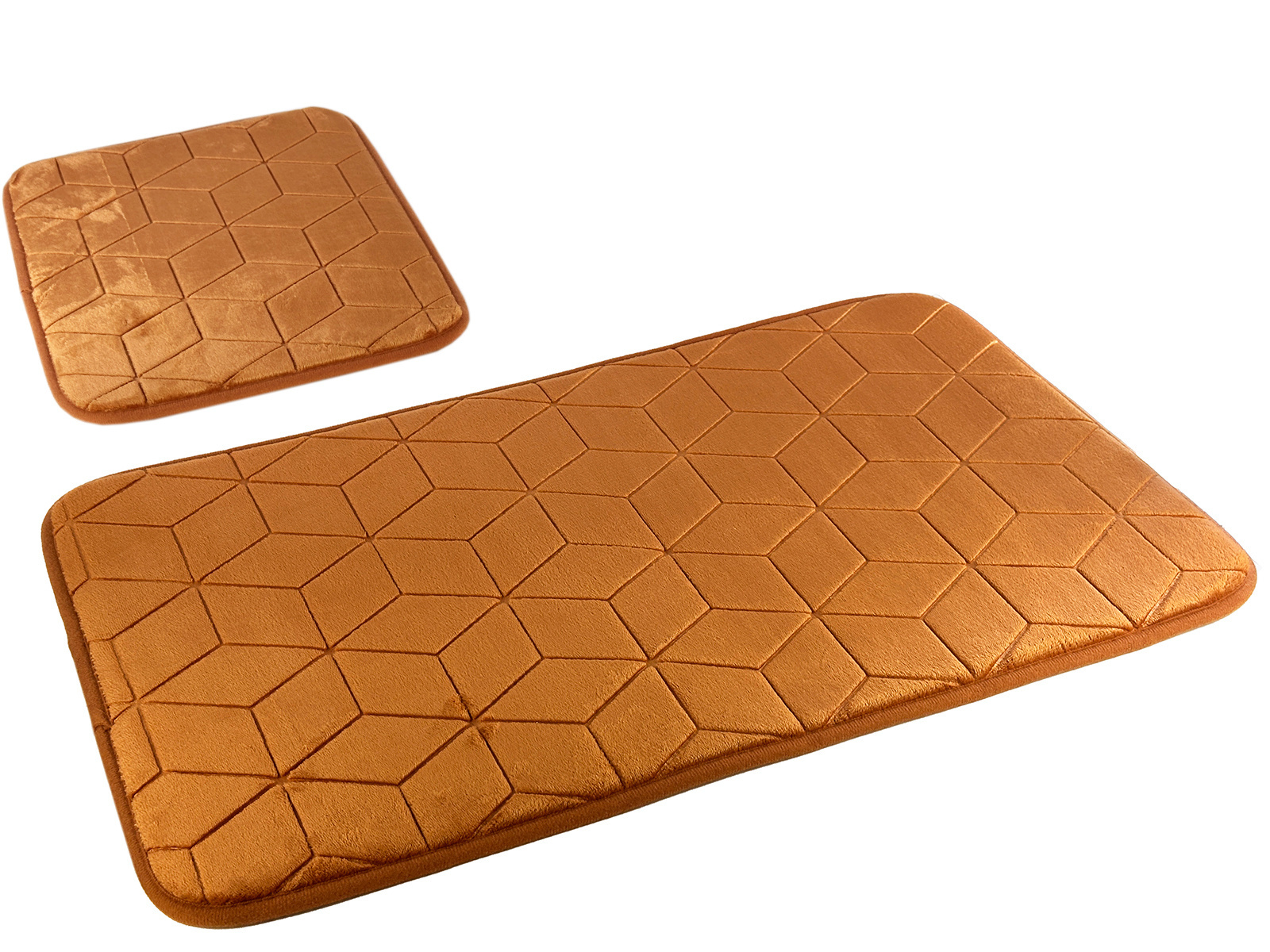- Bath mats SUMBA - soft microfiber polyester fill sponge on a non-slip surface. Monochromatic, with elegant embossed 3D designs. Available 50x80 cm rugs, in 2 pieces set or 3 pieces sets. Adapted to wall-hung toilets. Made in China.