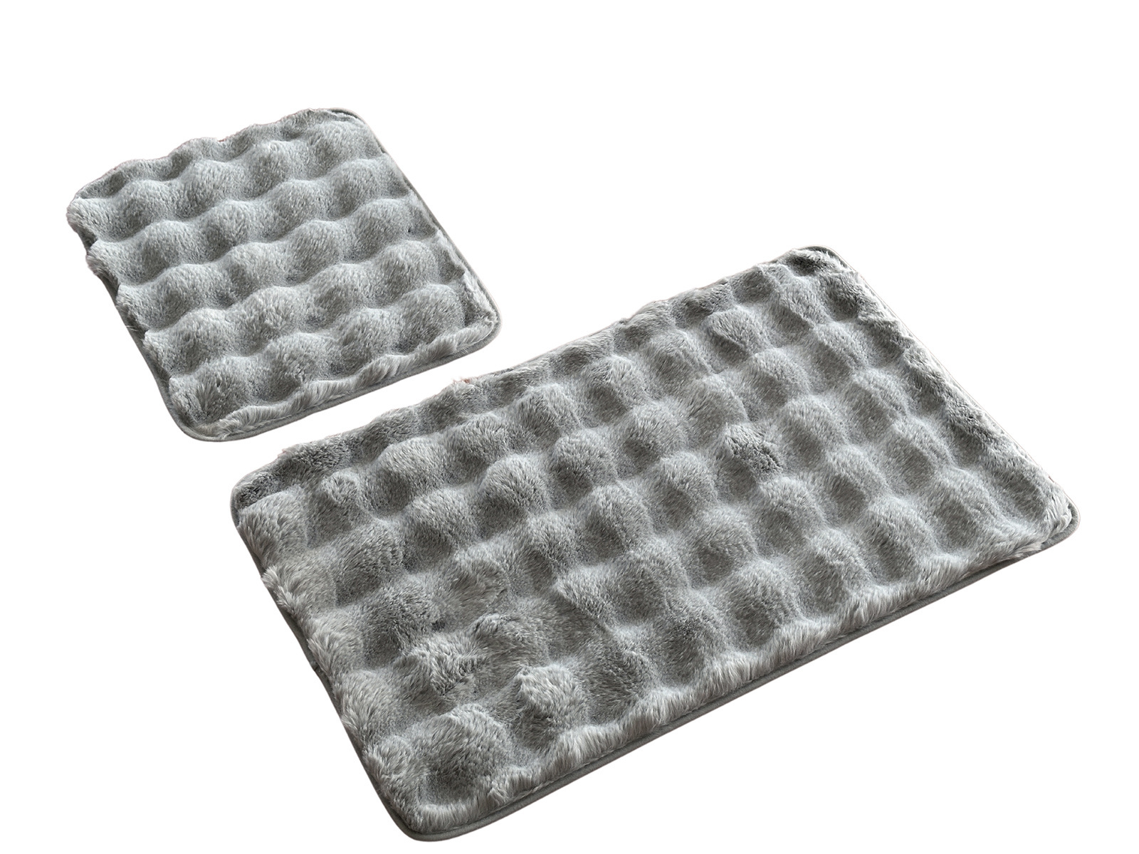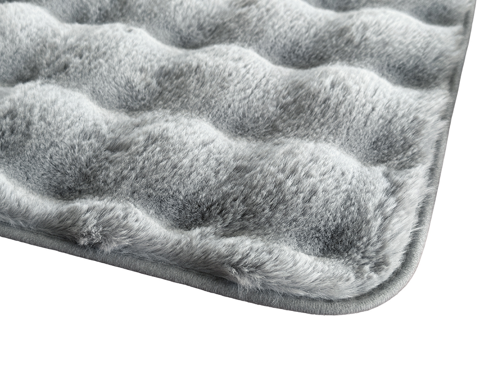 - Bath mats ARUBA – solid with a jacquard pattern, made of long (4 cm), soft polyester fiber, imitating rabbit fur, non-slip backing bath mats. Made in China.