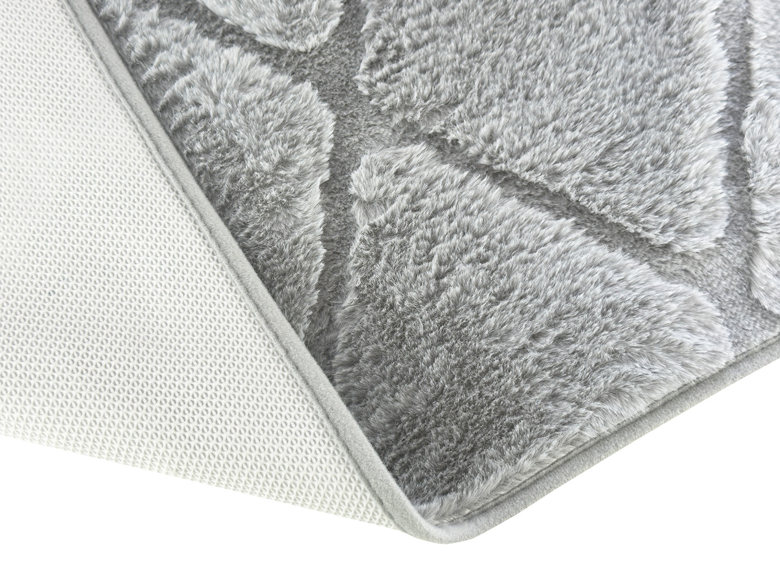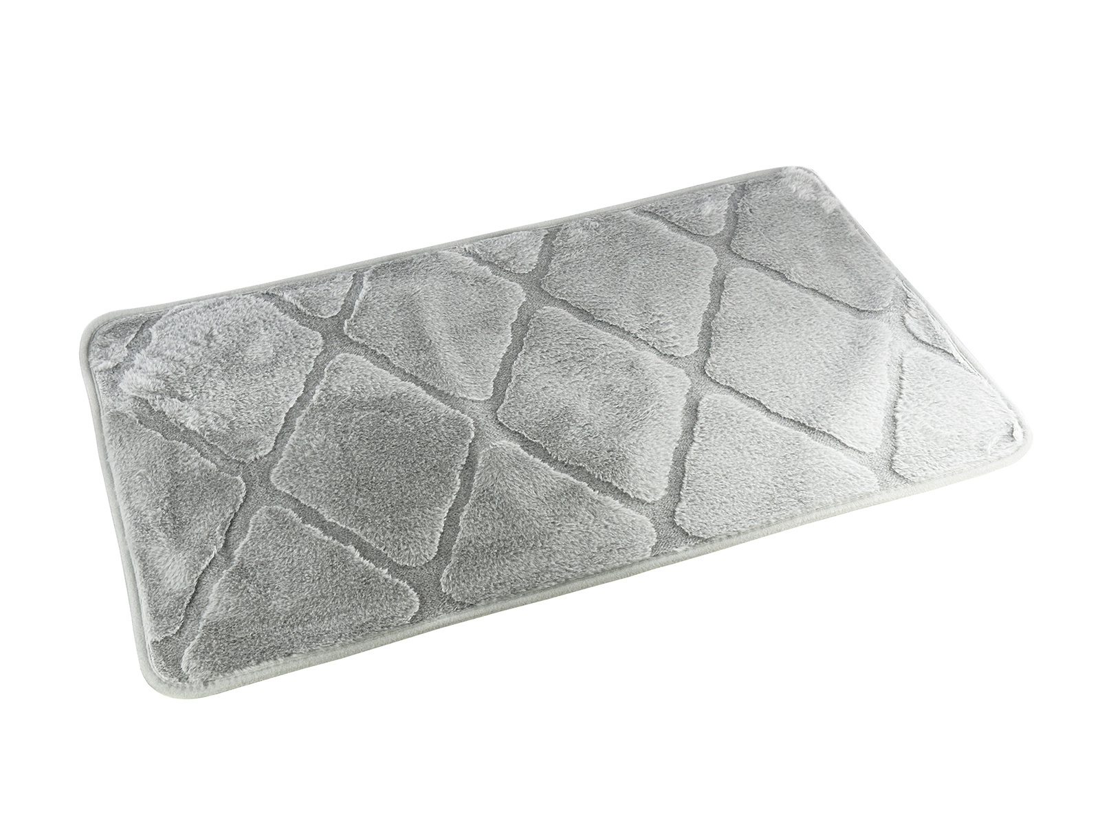 - Bath mats MUNA – solid with a jacquard diamond pattern, made of soft polyester fiber, imitating rabbit fur, at non-slip backing bath mats. Made in China.