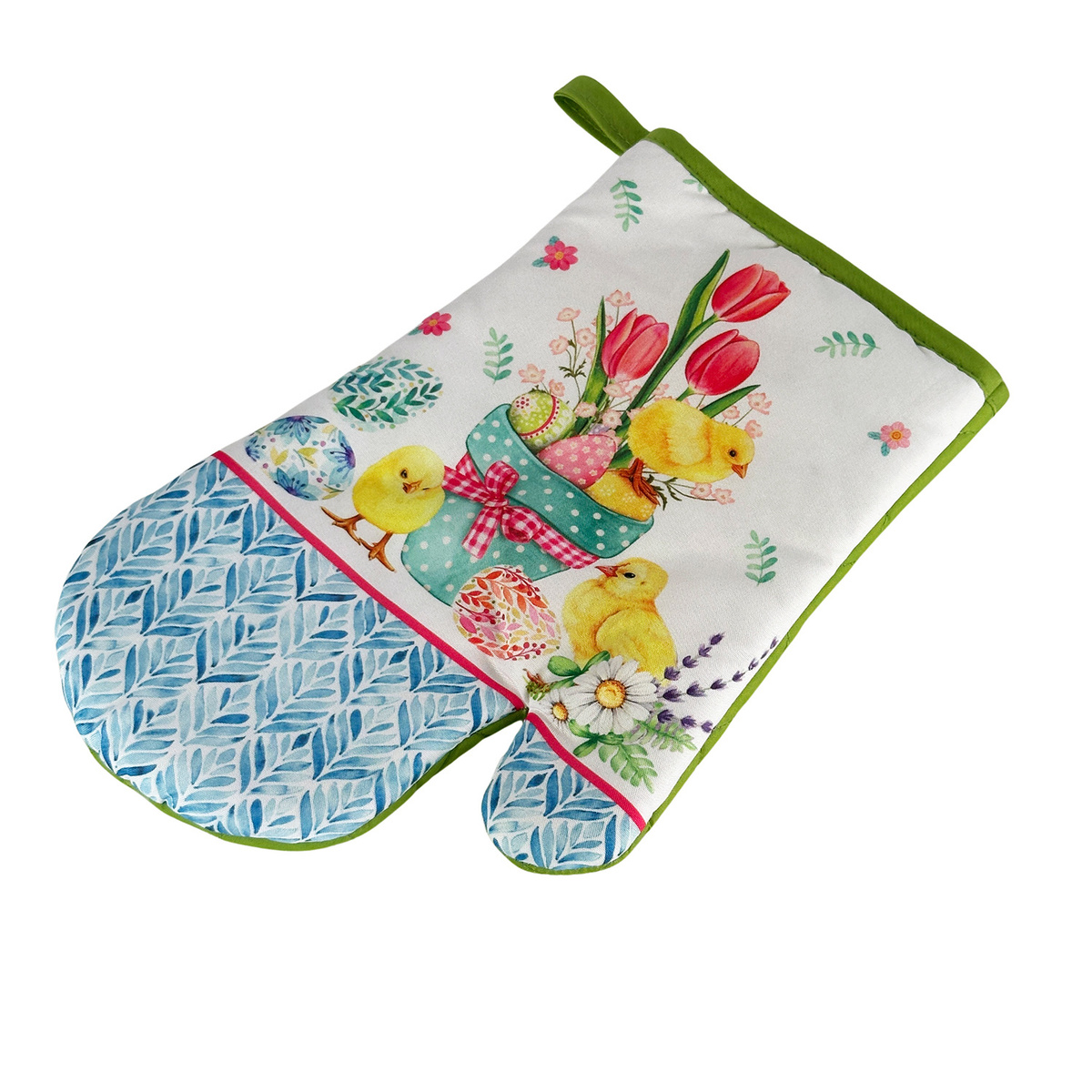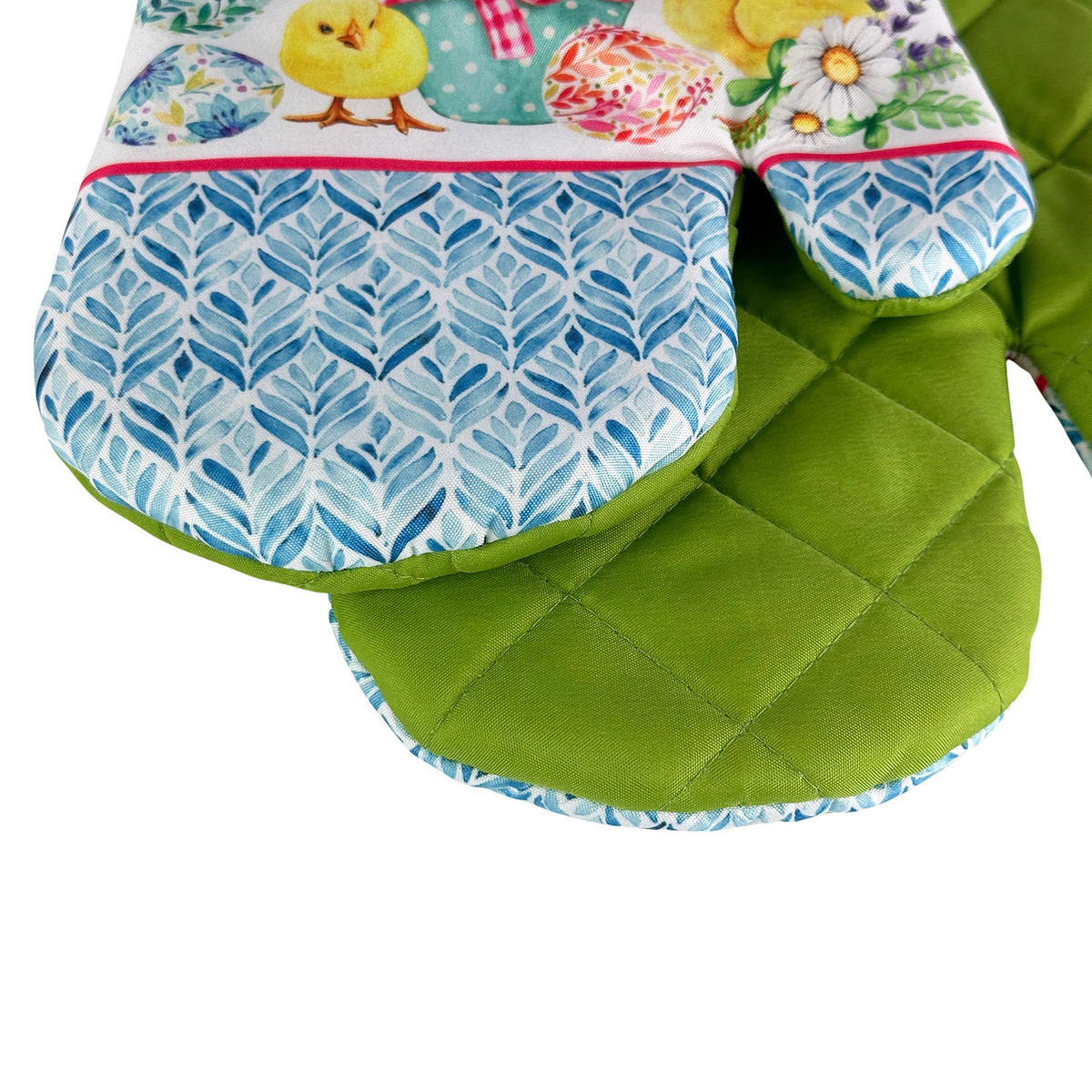 - Kitchen gloves with a magnet EASTER2 pcs. set, right + left (size 18x27 cm). Material 100% polyester with a print, non-woven filler. A magnet sewn-in. Clover motif. Model: MT173-02CE. Product has CE certificate. Made in China.