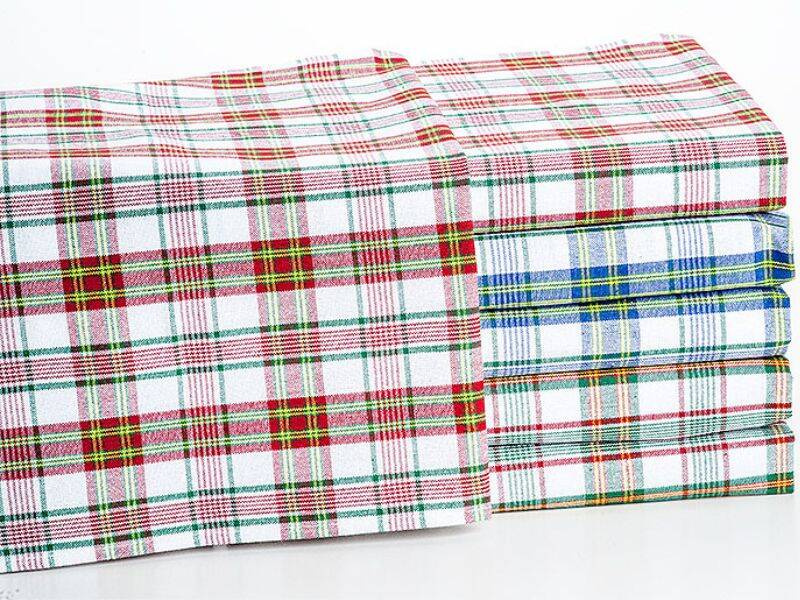 - Kitchen towels MARINA. Fabric: 100% cotton, size 45x65cm, weight 205g/m2. White fabric with coloured woven checked pattern in 3 colours: blue, red, green. Made in China.