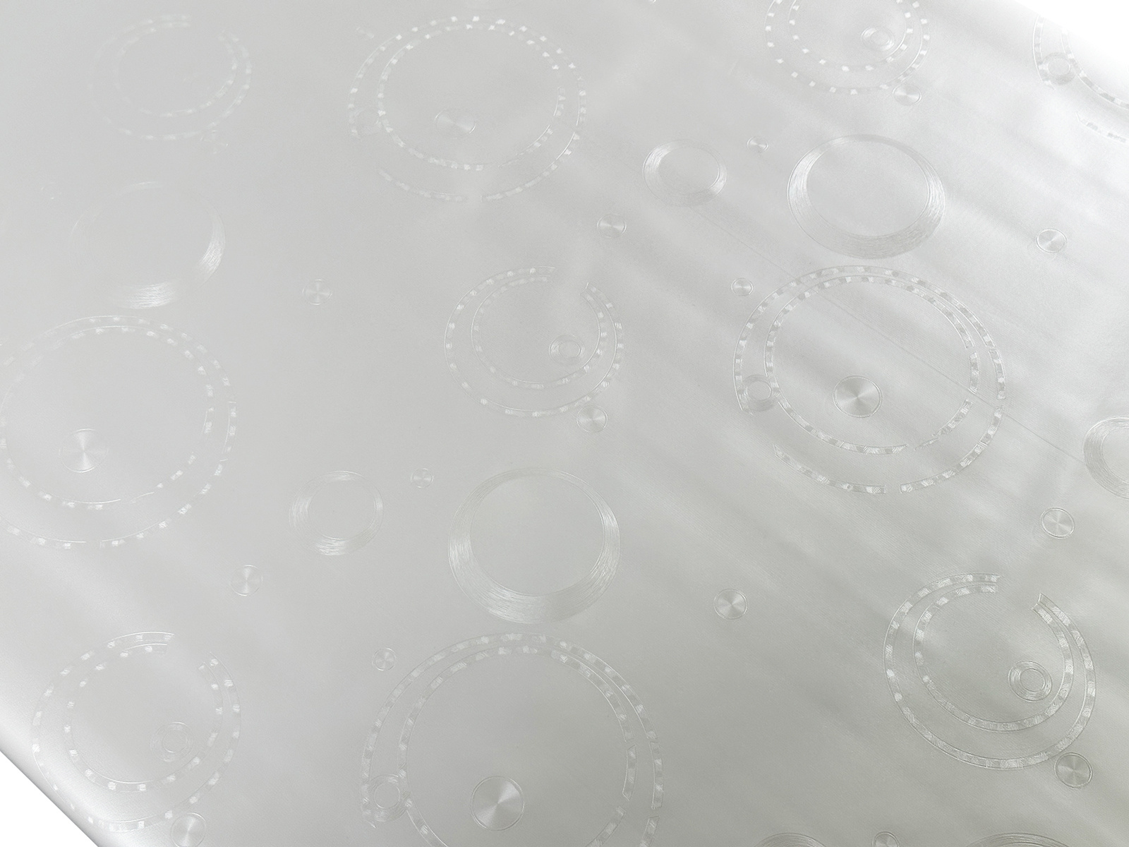 - Tablecloth PEARL – 100% PVC on a 100% polyester fabric backing in rolls, 137cm wide, 20m long. Elegant, printed and embossed patterns.