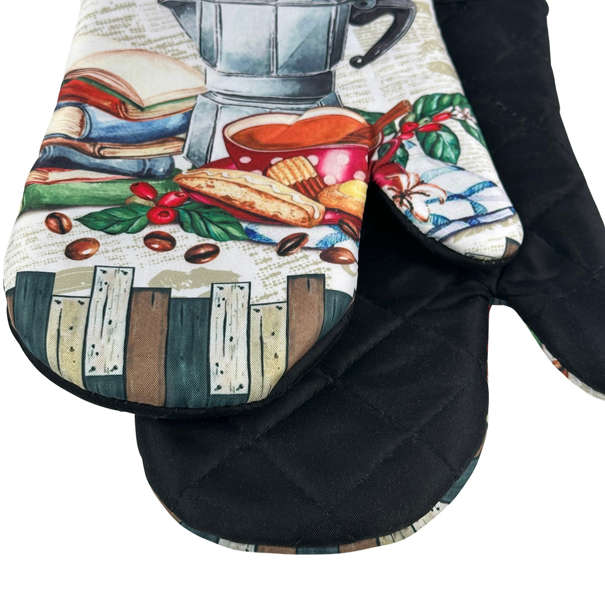 - Kitchen gloves with a magnet COFFEE II 2 pcs. set, right + left (size 18x27 cm). Material 100% polyester with a print, non-woven filler. A magnet sewn-in. Coffee motif. Model: MT173-02CE. Product has CE certificate. Made in China.
