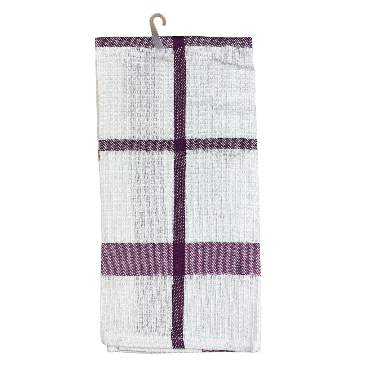 - Kitchen towels GRACJA. Fabric: 100% cotton, size 45x65cm, weight 205g/m2. White waffle style fabric with colored woven pattern in 4 colors: black-grey, red-orange, blue, green. Made in China.